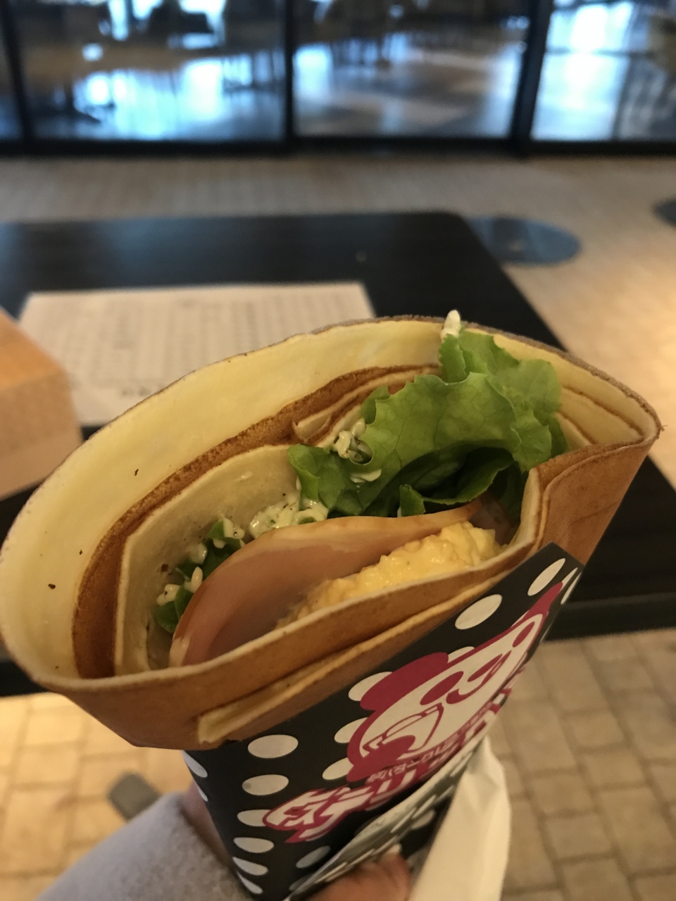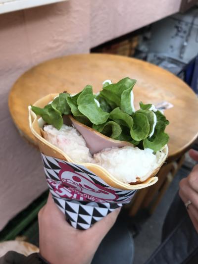 大阪店に行って美味しかったので、神戸本店にも行ってみました。同じくサラダ系のクレープを食べましたが、若干フニャっとしていて、大阪店の方が美味しかったと思います。大阪のは夜に行ったので空いていましたが、こちらは春節の午前中に行ったためか大行列でした。寒いときは防寒必須です。