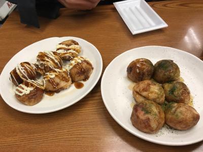 イートインできるたこ焼き屋さん。たこ焼き以外にも焼きそばやイカ焼きなどのサイドメニューもありました。たこやきソースの種類が豊富なのが特徴です。たこやきは出来立てだと思いますが、フニャっとしたのがでてきました。本場のたこ焼きはフニャっとしていることが多いです。