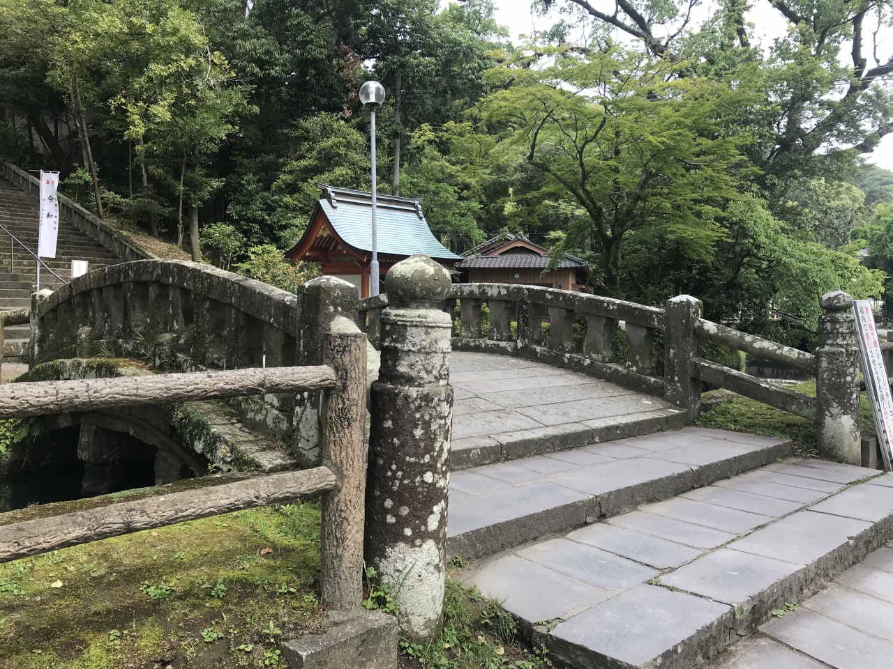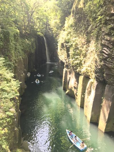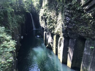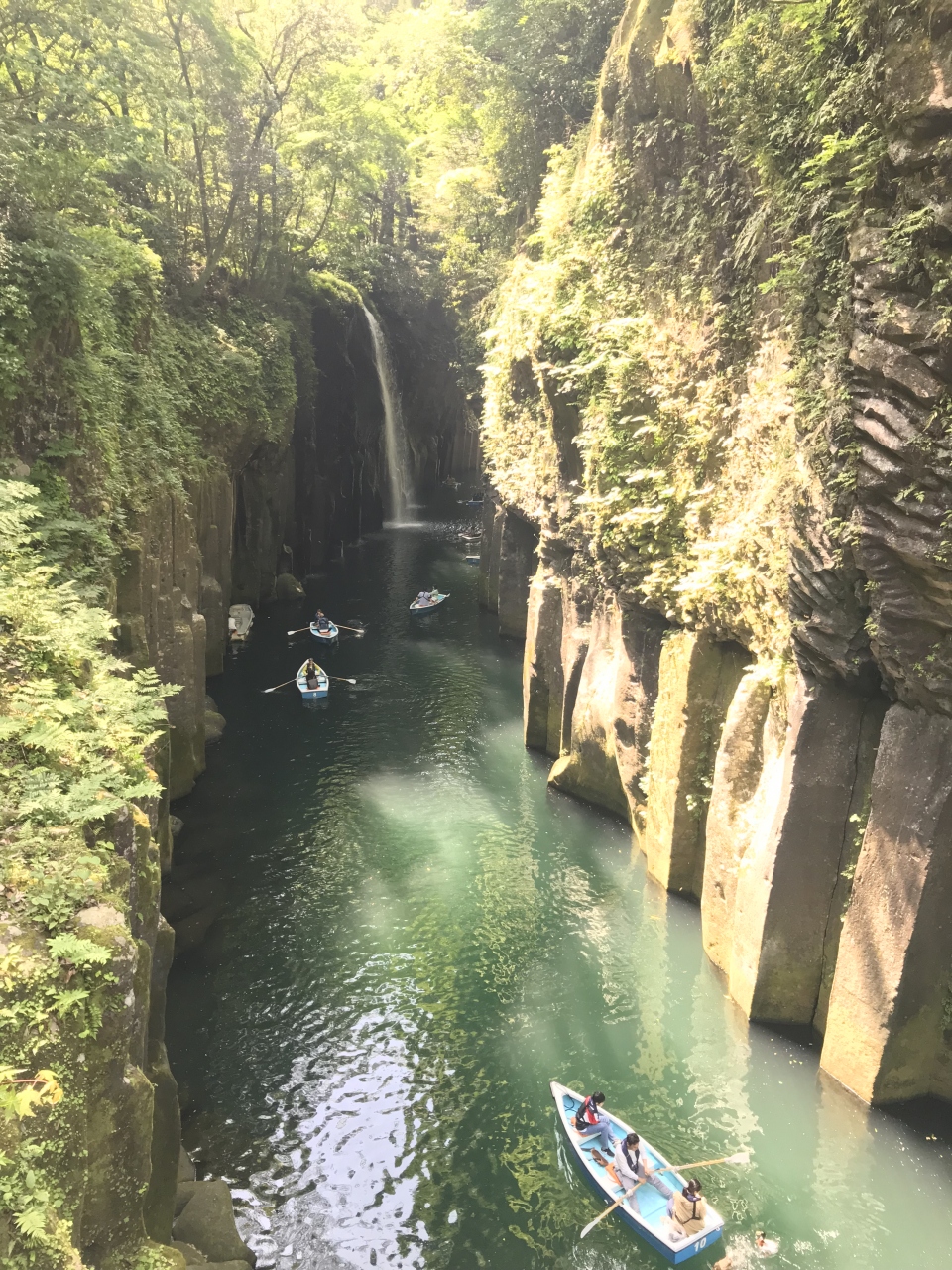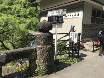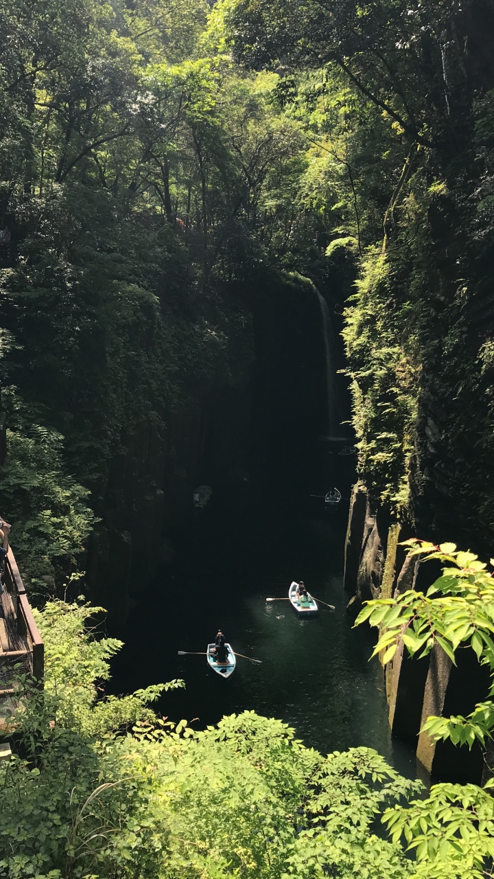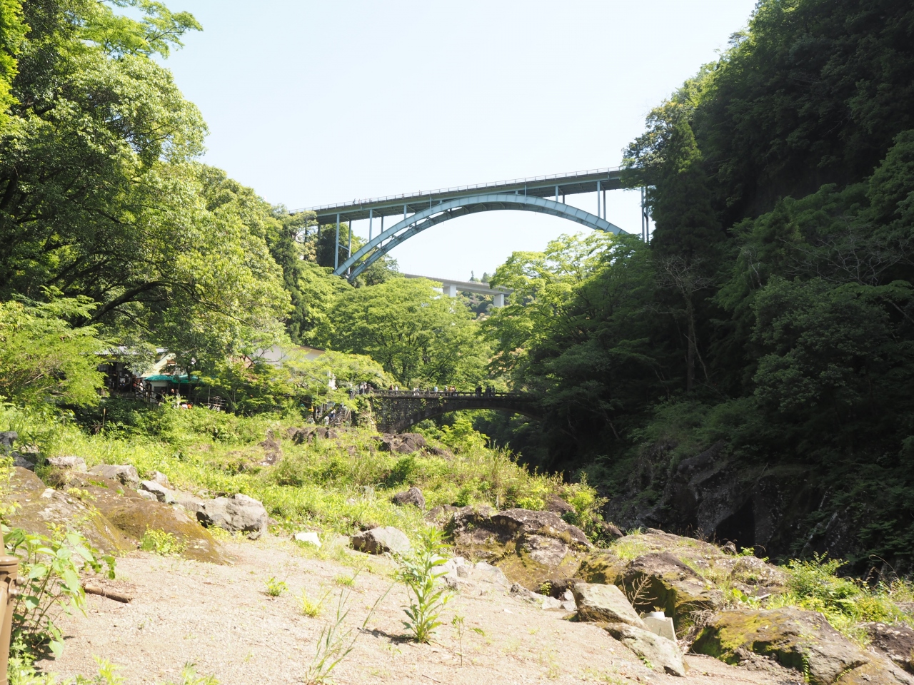 高千穂遊歩道へ行くために神橋を渡りました。車も通るような橋ですが、観光客が沢山いたため、遊歩道化していました。道は普通の道路ですが、欄干部分はだいぶ古くて趣があります。横から見ると石造りでアーチ状になっているのがよくわかります。