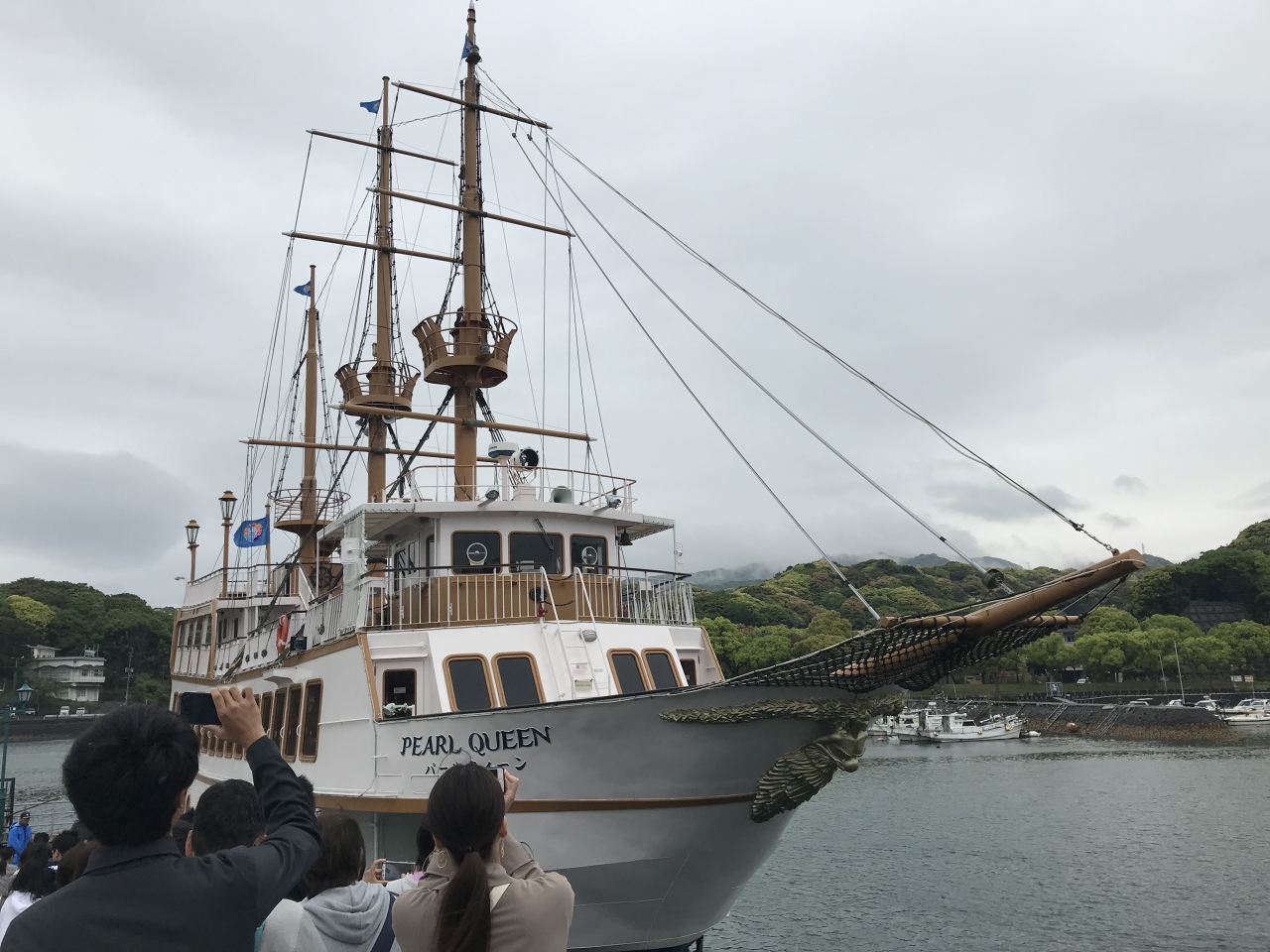 雨の日だったので、遊覧船に乗ろうか迷っていたところ、船越展望所からの眺めが素晴らしかったので、遊覧船に乗船。GWでかなり混雑していたけど、1時間後に出発の船の乗船券が買えた。車窓は素晴らしく、島々を縫うようにして走ってくれるので九十九島を堪能できる。遊覧船の中には売店もあって、50分の船旅を飽きずに過ごせる工夫がされてます。