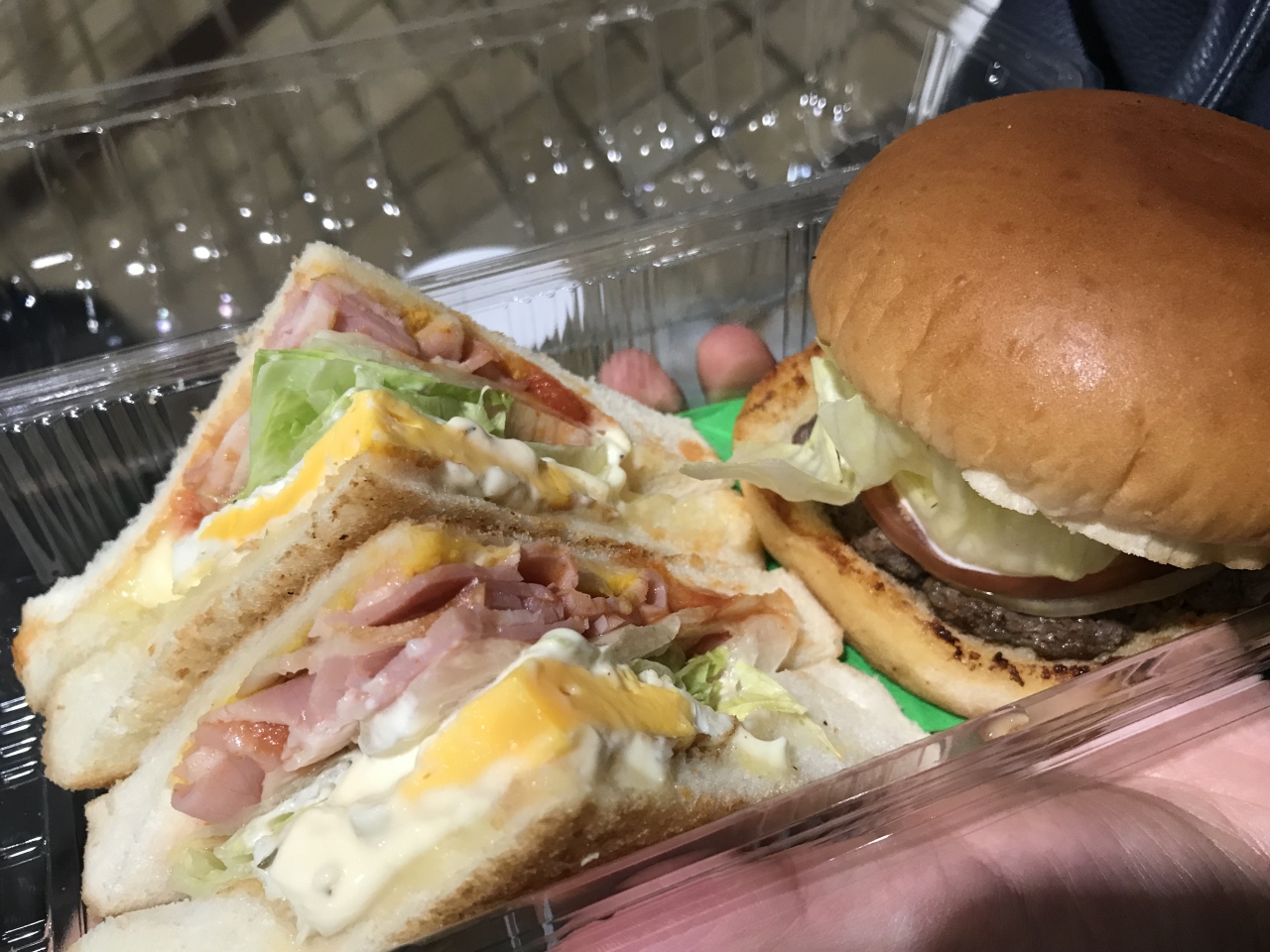 購入した遊覧船のチケットが一時間後だったので、簡単にご飯を済ませようと、ベルビーチの佐世保バーガーを買いました。売店みたいになっていて、イートインはできないので、ターミナルビルのベンチに座って食べました。佐世保バーガーとサンドイッチがセットになっていて、佐世保バーガーのパテが牛の味がしっかりしていて美味しかった。