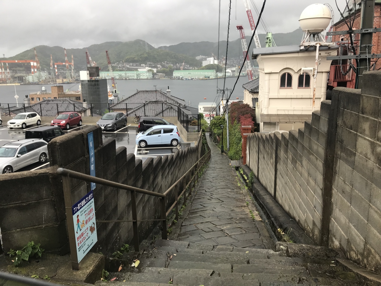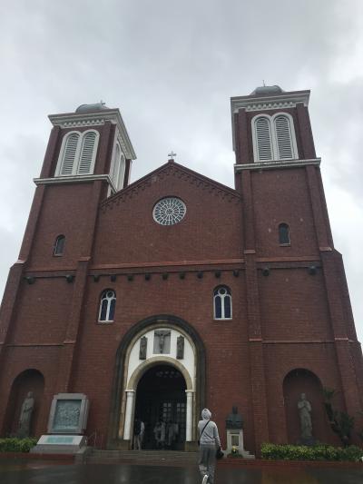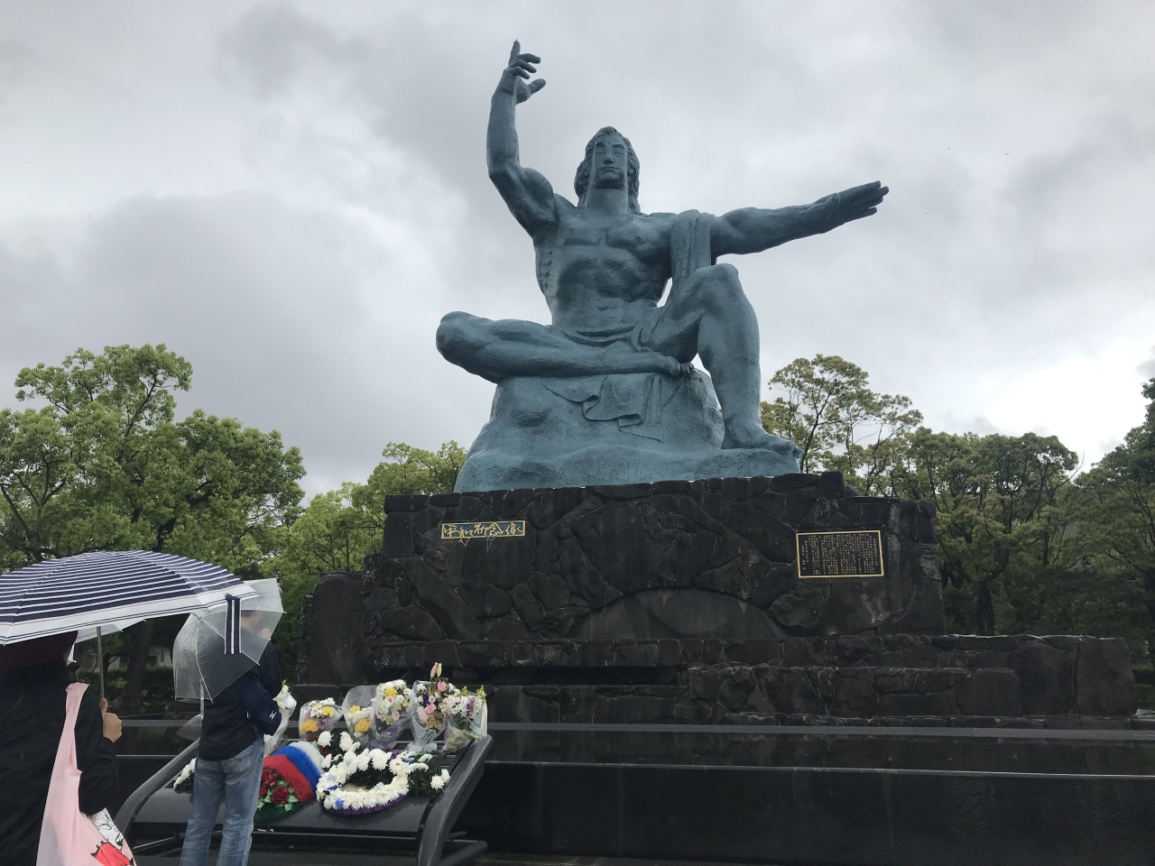 浦上天主堂の中を見学してから外に出て旧鐘楼を見学。旧鐘楼に行くまでの通路には被爆した石像が沢山並んでいて、胸が痛みます。旧鐘楼は半分土に埋まった状態で横倒しになっています。鐘楼の周りをぐるっと回ることで、全体像がようやくわかった。すごく大きな石の塔がこんなふうに吹き飛ばされてしまうなんて。原爆の悲惨を今に伝えてくれてる。