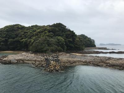 雨の日だったけど、船越展望所から見た九十九島があまりに綺麗だったので、遊覧船に乗って九十九島を見学した。大小様々の島が水面に沢山浮かんでいて、素晴らしい景色でした。晴れた日に来たいけど、雨でも遊覧船に乗って良かったと思う。50分と長い時間の船旅ですが、解説もしてくれるのであっというまに時間がすぎてしまった。