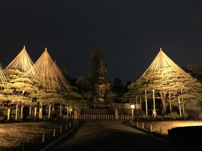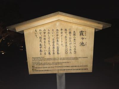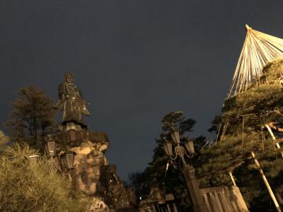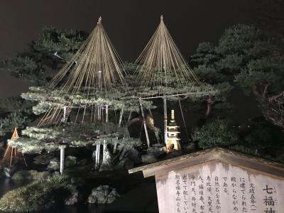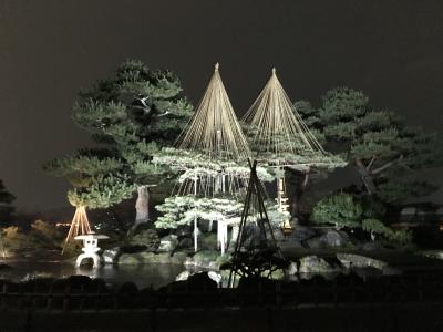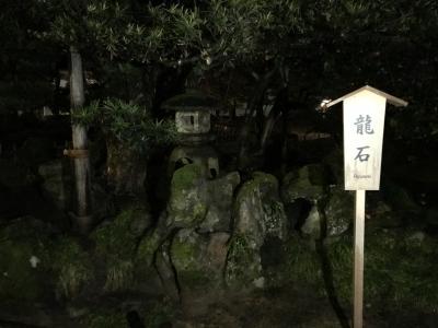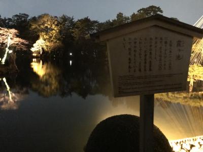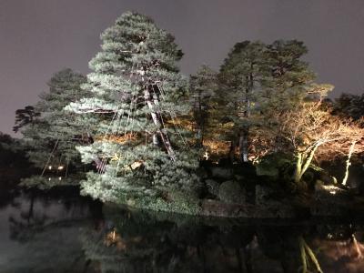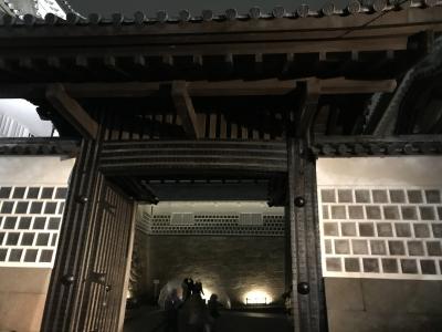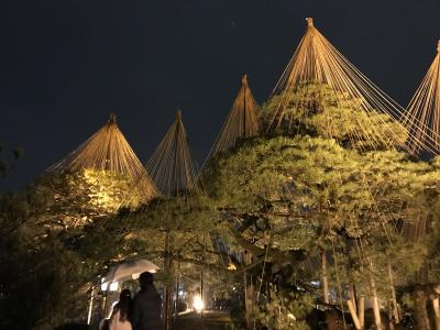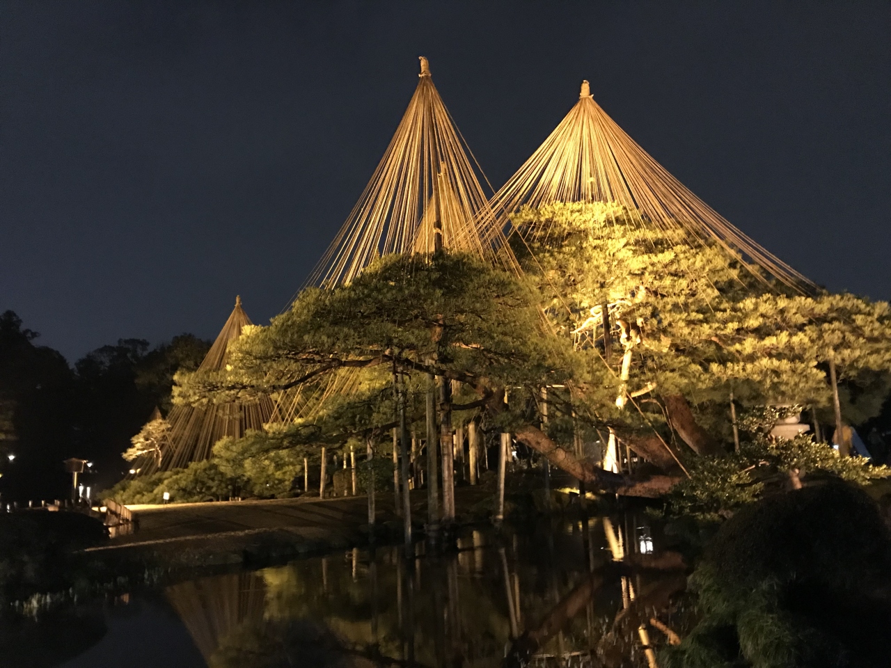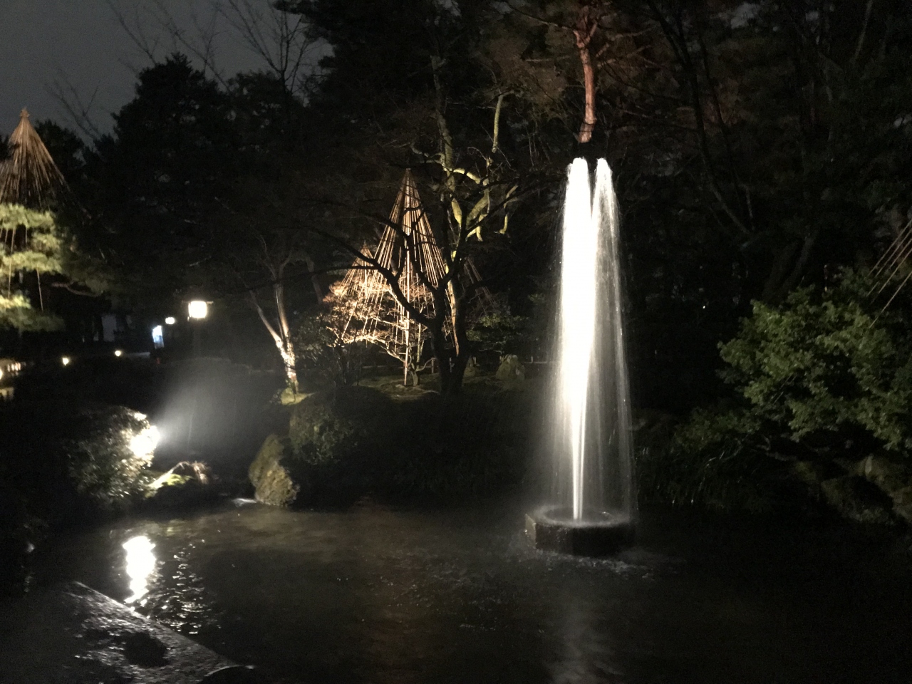 大手門口から入って石川橋まであるった。石川橋を渡って兼六園まで行きました。雨が降ったりやんだりしてて、石川橋はすべりやすい状態。夜だったので、結構暗い。緩やかな坂になっているので、明るければ写真映えしそうな橋です。アイフォンでは暗すぎてなかなか撮りづらい。