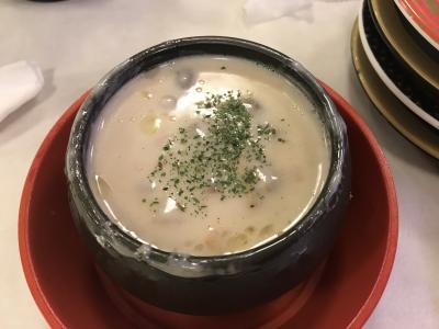 若狭でお祭りを見た後に、こちらの回転寿司を訪問。家族連れで大分混んでた。クラムチャウダーの茶椀蒸しを注文。ジャガイモとかも入っていて意外と美味しかった。マグロは凍っててガッカリ。だいぶ古くからある店なのか、お皿結構年期入ってます。