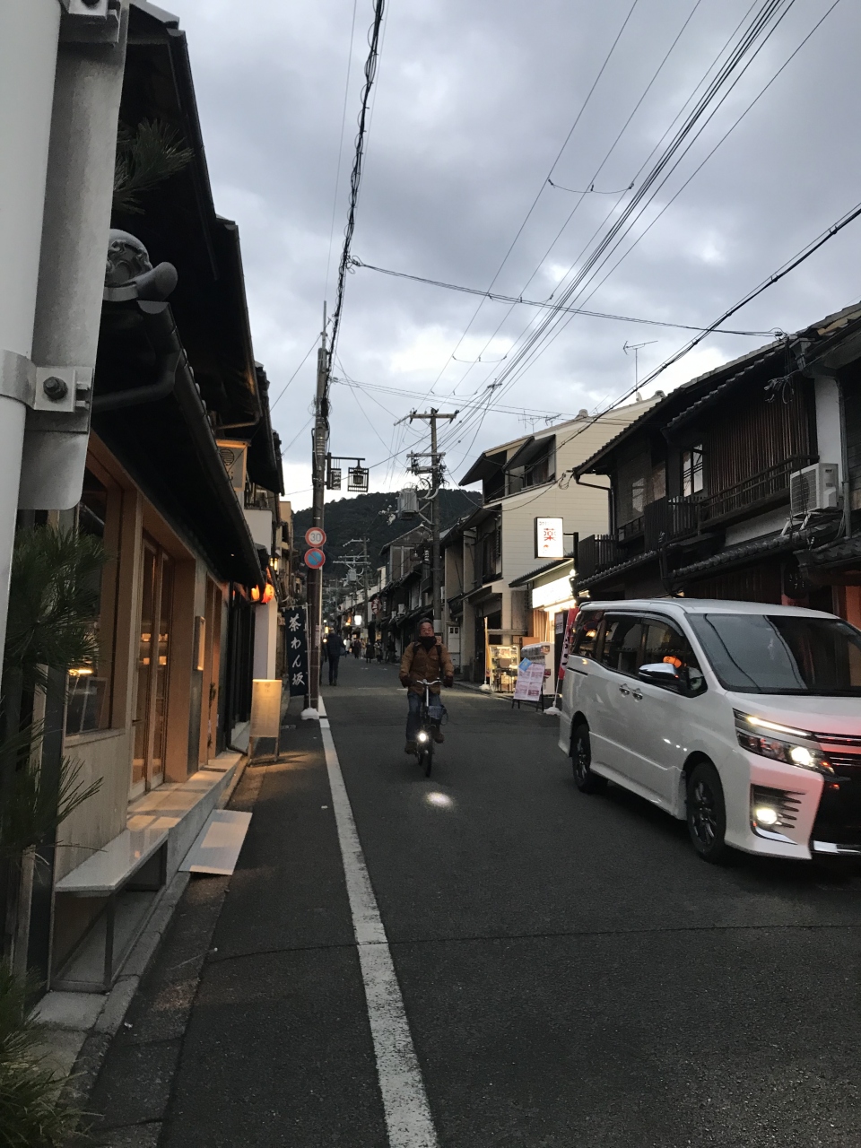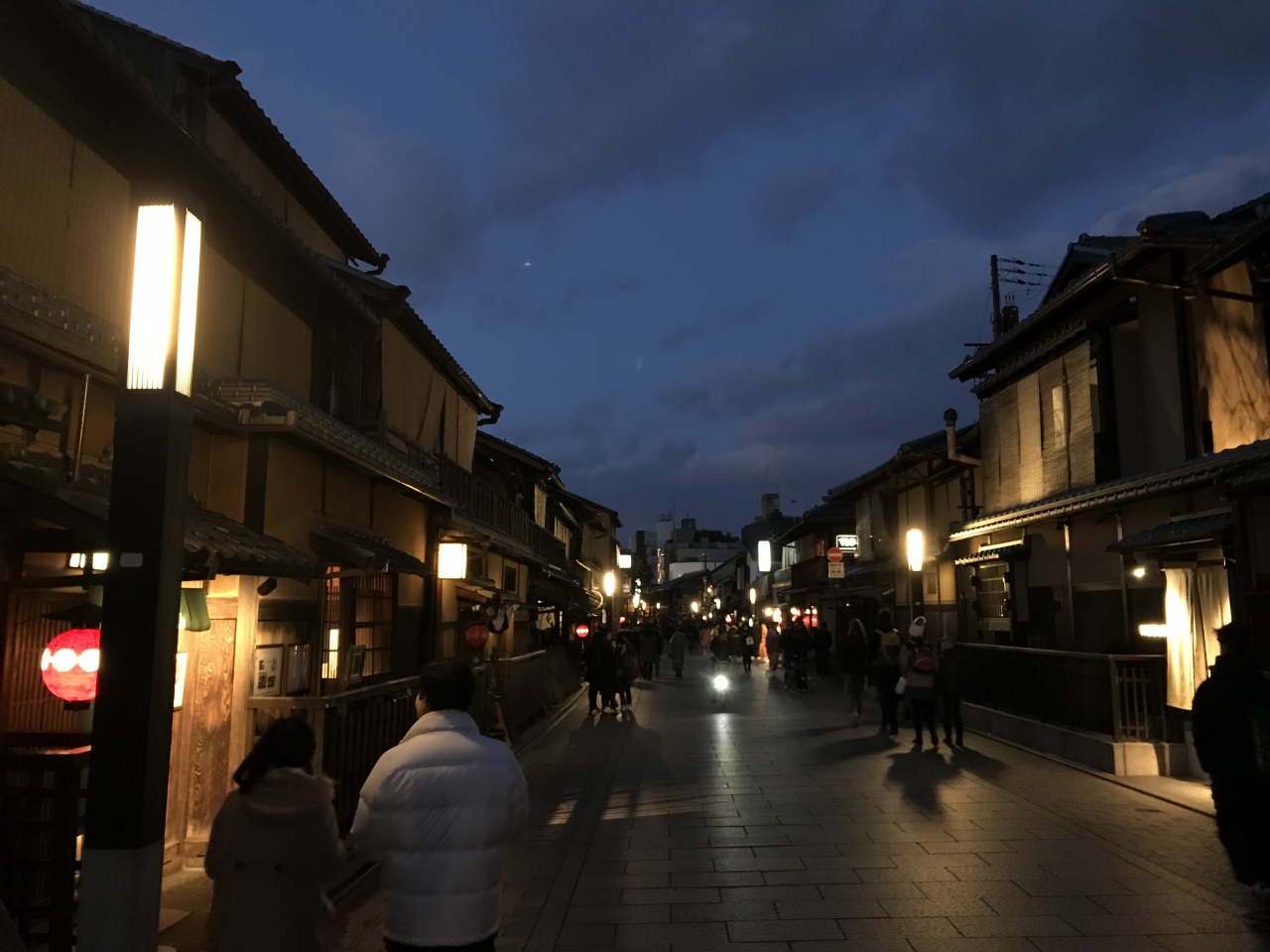 維新の道から二年坂、三年坂を通り、清水寺の外側を見学し、茶わん坂を通って帰って来た。正月明けだったからか、二年坂も三年坂も普段より人が少なく、茶わん坂はガラガラだった。夕方だったのもあったけど、お店の明かりがポツポツついていて、哀愁のある茶わん坂だと思った。