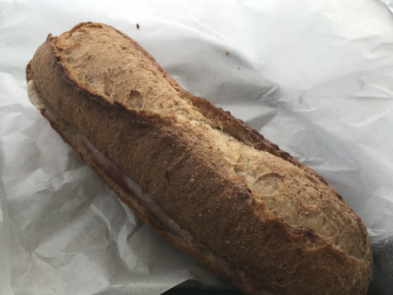 早朝にSAに立ち寄り。本当はフードコートとかで食べたかったけど、早朝時間外なので消去法で2階のスタバを訪問。スコーンとハムのバゲットを購入。滅多にスタバに行かないけど、やっぱり割高感。飲み物は特に買ってないけど、対応は良いよね。