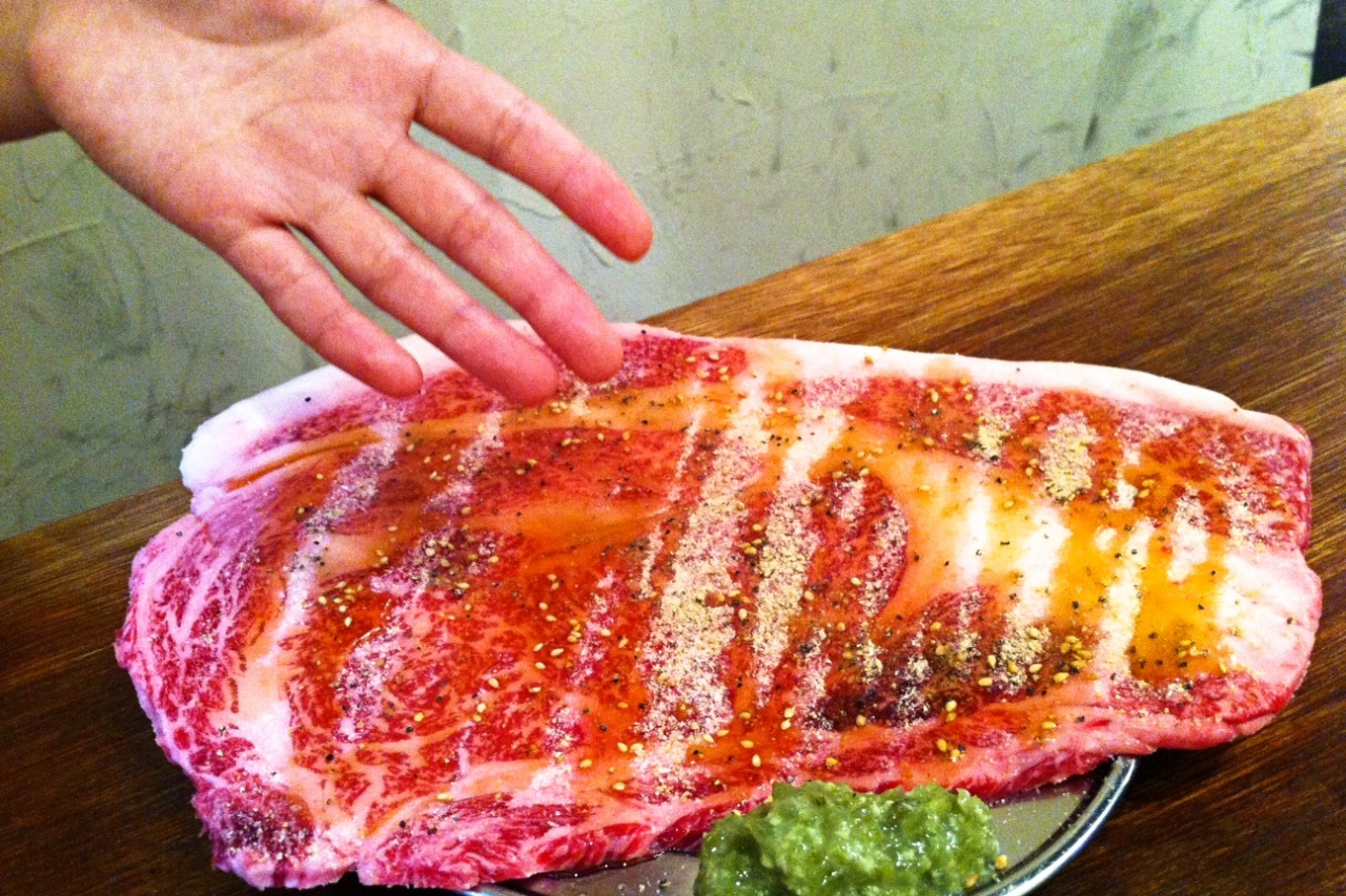 名物のはみ出るカルビを注文。予約必須と書かれてるけど、予約しなくても注文できた。カルビの塊が運ばれてきてテンションあがる。これで1700弱なら安いと思う。はみ出るカルビだけで胸焼けしたけど、ホルモンがウリのお店なのでふたご盛を注文。いろんな部位がのってて安くて美味しい。今度は、はみ出たいハラミを予約して行こうと思う。