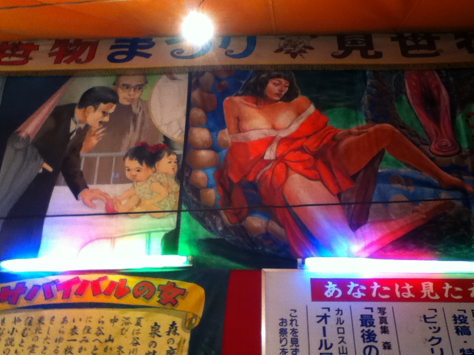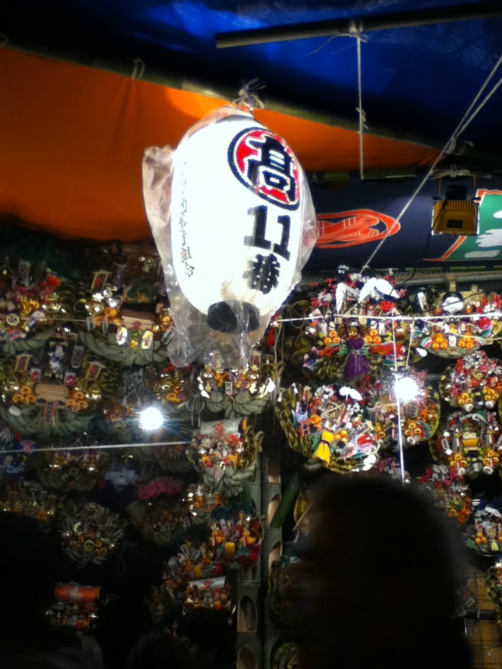 初めて来たけど、浅草の酉の市と同じくらい活気があってにぎわっていた。出店の数も豊富。今回、花園神社の酉の市に来たのは、見世物小屋を見るため。見世物小屋は花園神社の名物らしいですね。浅草にはないです。