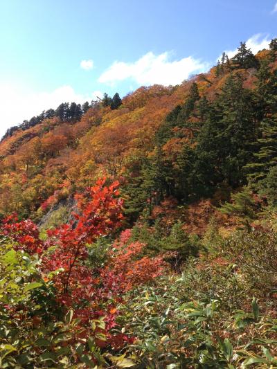 岐阜側から入ると、ふくべの大滝がすごい近い。紅葉シーズンを楽しみながら大滝周辺で休憩。観光客もまばらで快適だった。青空の元、滝がザーザー流れていて山の雰囲気を楽しめた。86mも直下してる滝で、水量は少なめだけど迫力はある。山の雰囲気に魅かれて、山登りに目覚めそうになる。