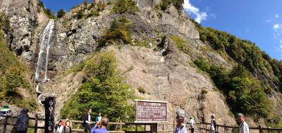 前回、石川県側からドライブした時は紅葉にまだ早かったけど、今回岐阜側からドライブした時は、なかなかの見ごろでした。山の色が赤やオレンジや黄色に染まっていて、素晴らしい景色。青空も広がっていて気持ちよかった。ふくべの大滝まで行って紅葉を楽しみ、それから白川郷へ行きました。