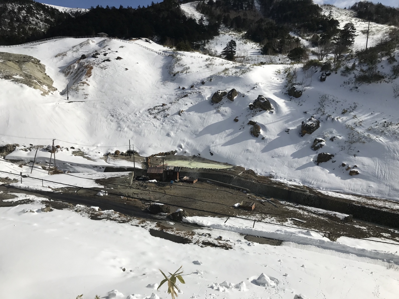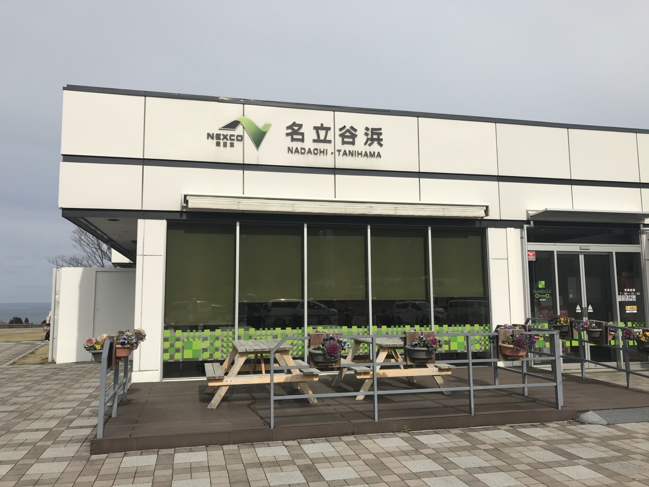 小さめのSAですが、新潟のお土産を買うには十分な品ぞろえでした。亀田製品が一押しです。お店の裏側にはベンチとテーブルも置いてあって、冬でなければ何か外で食べるのもよさそうです。訪問した時は暖冬の1月でしたが、それなりに寒かったです。