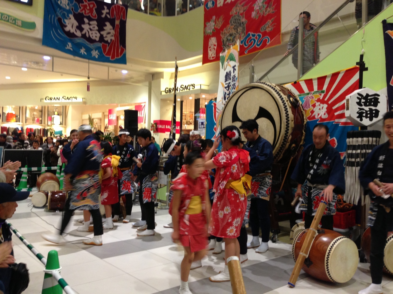 跳ね太鼓を見に訪問しました。イオンで演奏するのはお正月限定みたい。太鼓は迫力があって、楽しめた。ついでにイオンの中をブラブラしたけど、2階部分など、客がまばらな雰囲気。この辺はお正月は家でのんびりしてる人が多いのかも。客も少ないので、道が広くて助かった。
