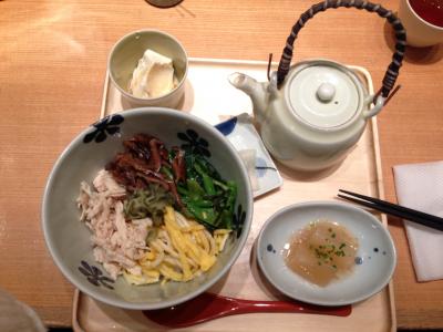 さっぱりしたものが食べたくて訪問。鶏のお茶漬けを注文した。山菜や金糸卵も乗っていて、彩り豊か。お茶を注いで、スルスルと食べてしまった。外で食べるお茶漬けはこれが初めてだったけど、美味しかった。でも、自分ちでもそれなりのが作れるし割高感。結局これ以降はお茶漬け専門店に入ってない。