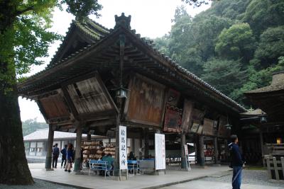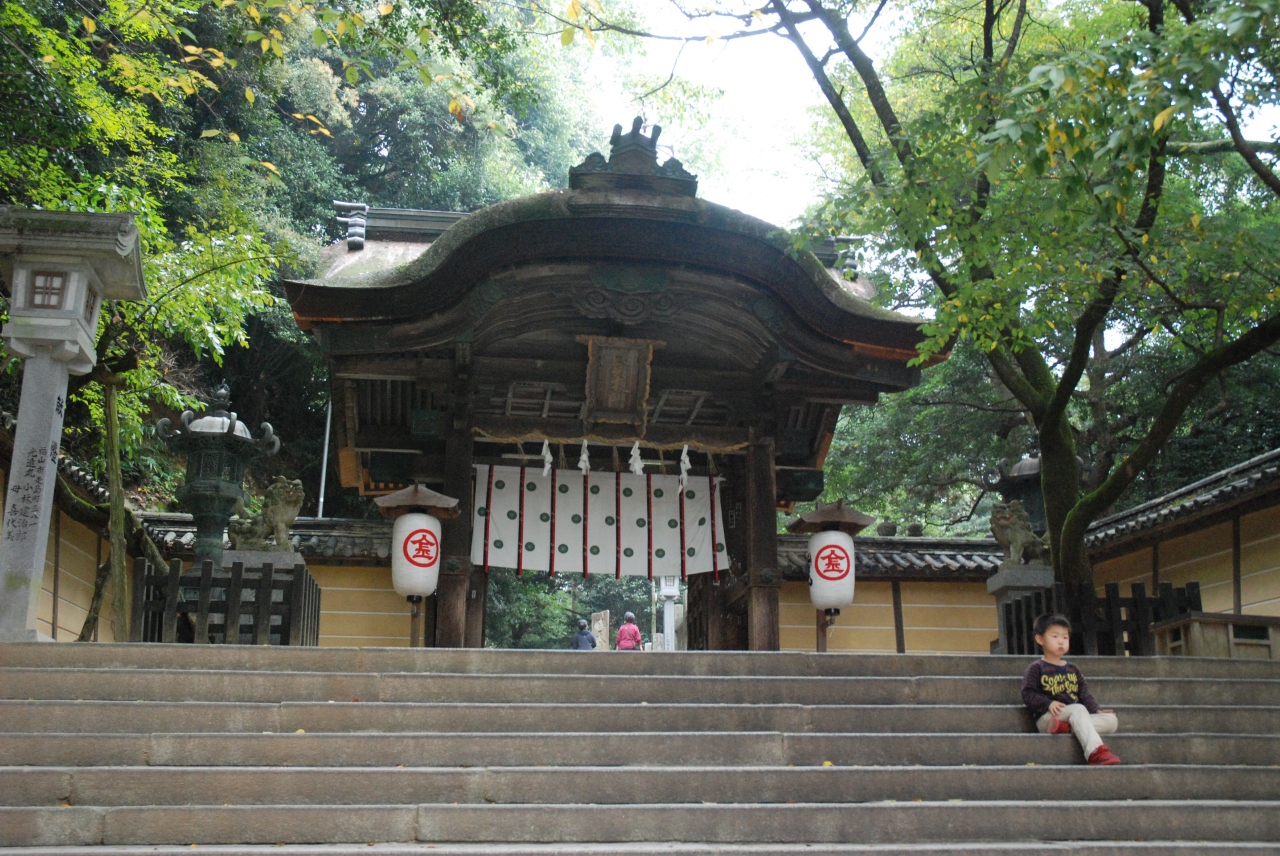 参道を通って長い階段を登り大門にたどり着いた。全体が黒っぽくお寺の門のようだった。