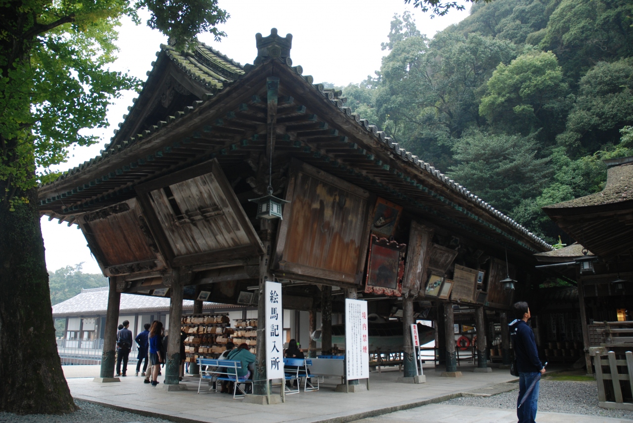 立派な絵馬堂。絵馬堂、外壁に掛けられている絵馬はどれも大きくて立派、そしてだいぶ古い絵馬ばかり。いるごろ奉納された絵馬か知らないけど、貴重な割に、雨風がしのげないという。一般ように小さな絵馬がの記入場所がこちらにある。今も続々と新しい絵馬が奉納されているようです。