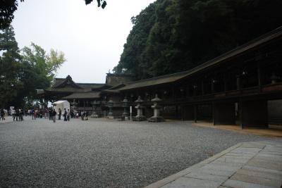 事前リサーチをしないで訪問したけど、本宮までかなり距離がある。しかも階段が多いので結構しんどい。本宮はとても見事な建造物で写真を撮りまくった。渡り廊下が長く拝殿とつながっていて、全体像が写真に収めにくいし、わかりにくい。曇り空というのもあってか、お厳かな雰囲気だった。