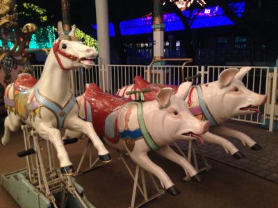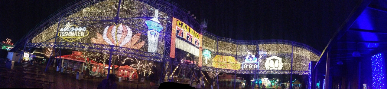 イルミネーション目当てで来たわけではなかったけど、夜間訪問だったので見ることができた。特にジェットコースター全体に施されるイルミが中々見ごたえがあって、何枚も写真を撮ってしまった。大音量の音楽もサーカスみたいでよかった。でも、人があまりに少なくてちょっと寂しい感じ。