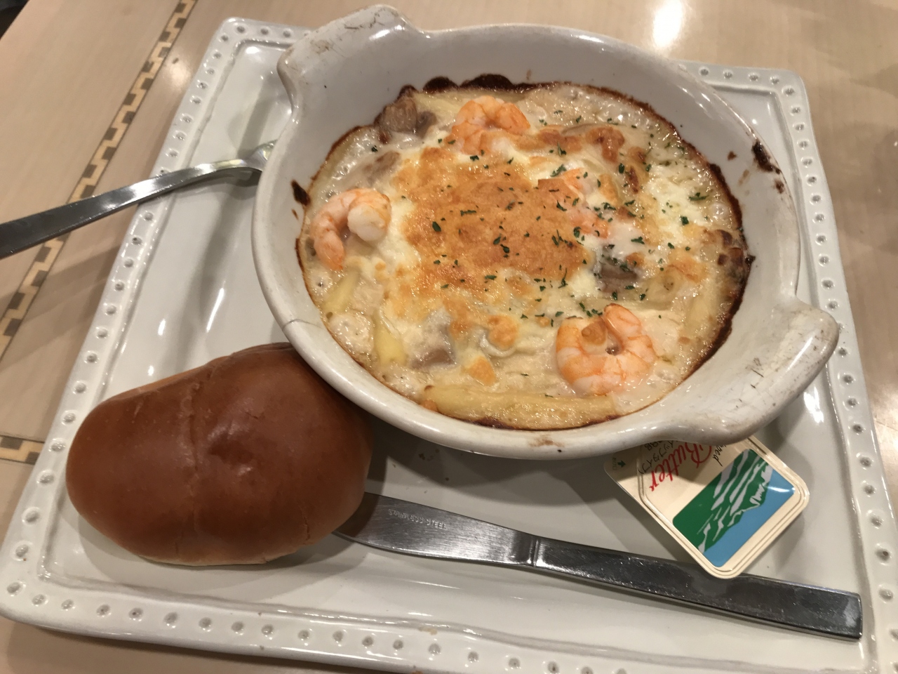 イートインしました。ピンクの内装が特徴的で、西のマダムシンコと良い勝負です。アマンドは老舗らしいですが。エビグラタンに1つパンがついて、1500円くらい。めちゃ割高でっす。味も普通。。ここはパフェを食べにくるとこですね。今度はパフェを食べに来たいです。