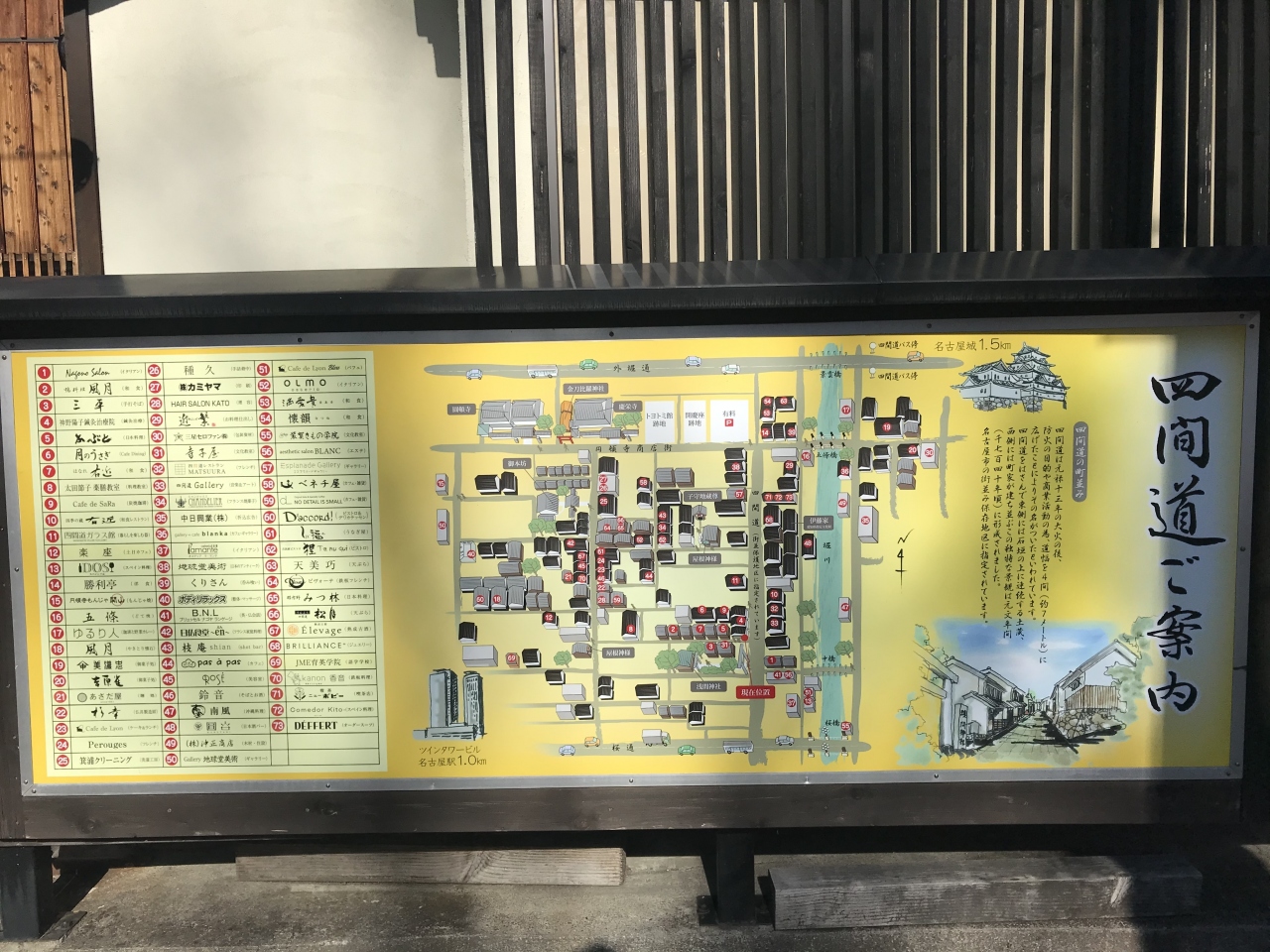 四間道のマップを見ると、お店はたくさんありますが、ほとんどが飲食店。観光地っぽい感じではなかったです。屋根神様という、屋根の上の神社が興味深かったです。独特な文化が根強く残っています。