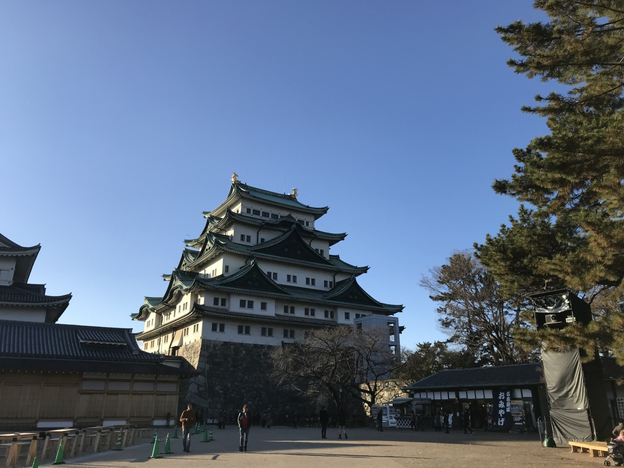 名古屋城初訪問。天守閣は工事中で入れず、本丸や庭園を見学しました。名古屋城は寸法などの細かい部分まで再現して作られた貴重なお城。本丸においては、それぞれの部屋の金ピカがとにかく豪華でした。入った建物の中で西北隅櫓が一番高く、名古屋の景色を眺めることができます。