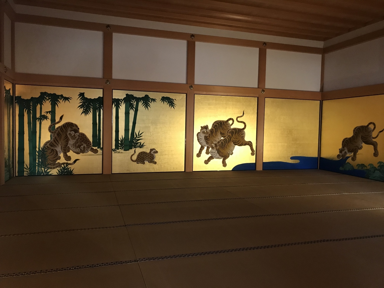 尾張藩主の住まいとして作られた本丸御殿。再現された空間は金が多く、とにかくゴージャスの一言につきます。見どころは対面所と呼ばれる藩主と身内、家臣などが私的に対面する部屋です。部屋の中には入ることはできませんが、襖に描かれた風俗画などじっくり見たくなる細かさです。