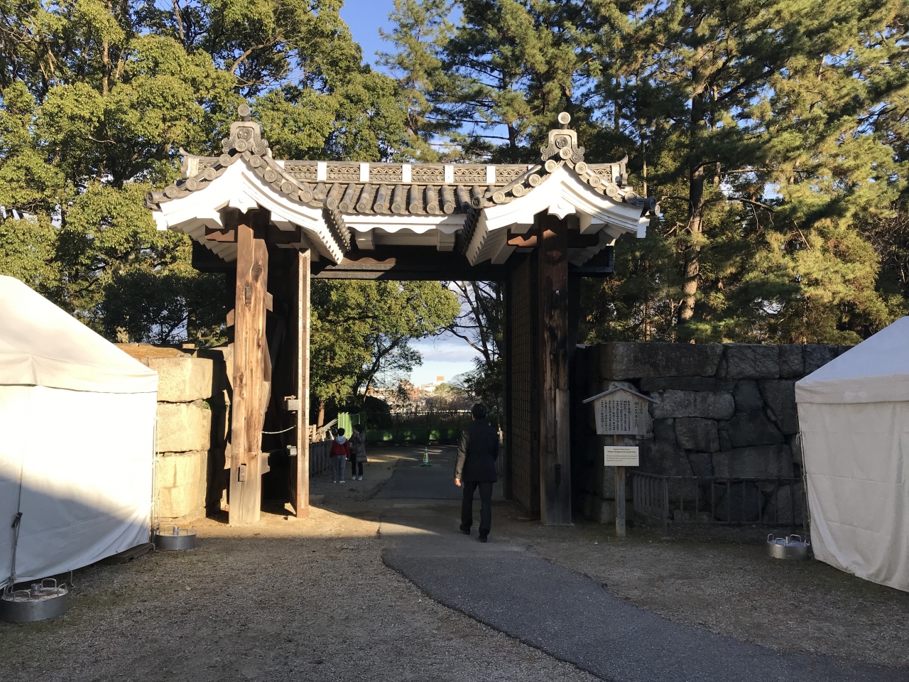 1月初めに訪問したので、お正月用の門松が正門両脇にありました。暖かい陽気でしたが、雰囲気はお正月でした。名古屋城正門は旧榎田門とも呼ばれ、昭和34年に復元されたものです。内門である正門は、外門の冠木門と多門櫓と合わせて防御力の高い出入り口として活用されていました。コンクリでの復元ですが、復元されてから長い年月が経っているので風格が感じられます。