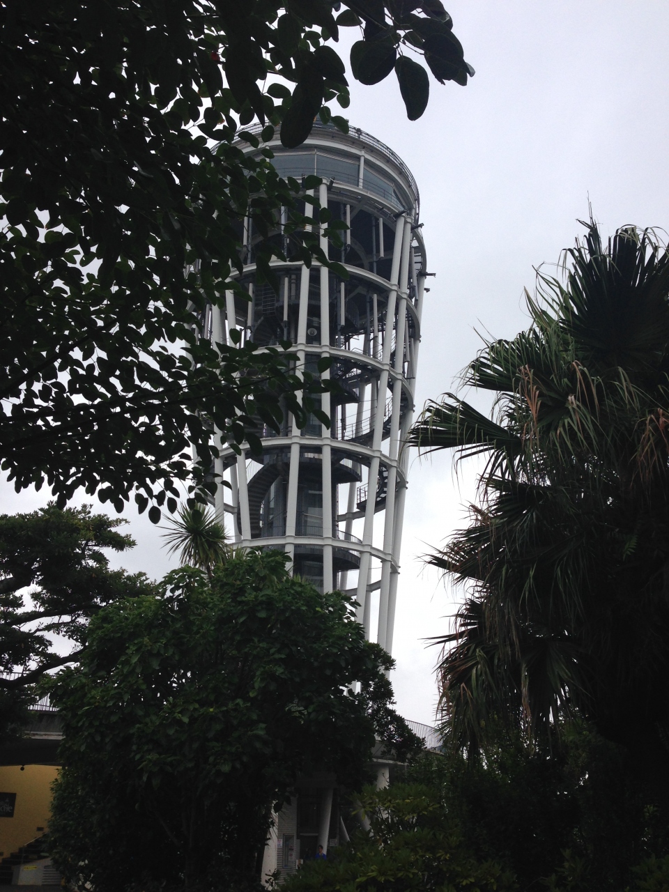 江の島に来たので、シーキャンドルにも上りました。江の島の灯台です。小雨が降っていたので、景観が悪く、海も空もどんよりしてた。あんまり高い灯台ではなので、眼下には江の島の木々が広がっていた。展望台に上ったおかげで、江の島って自然が多いんだなあと改めて感じました。休日だったけど、空いてた。