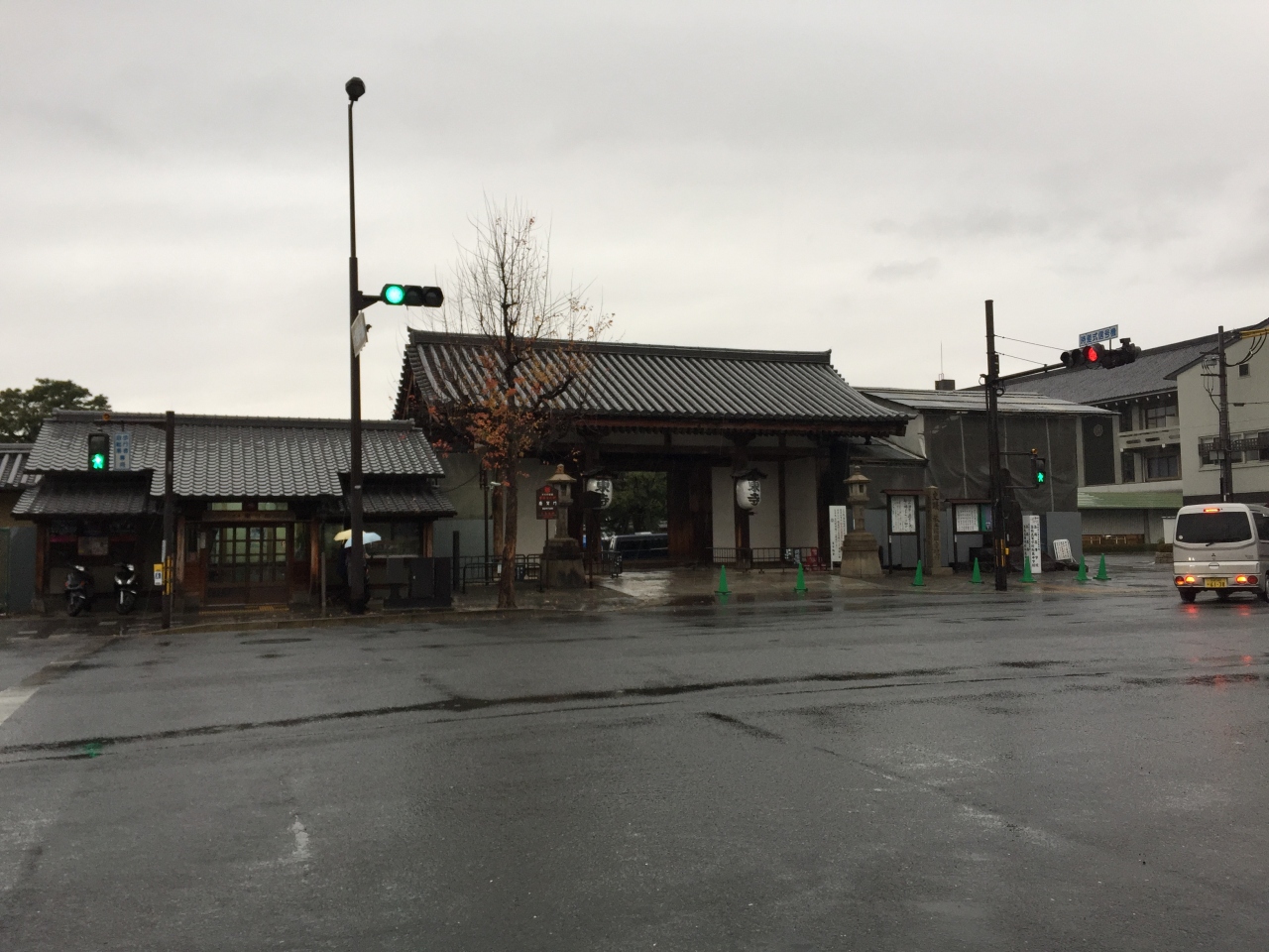 平安神宮の応天門をくぐると正面に拝殿、拝殿左側に白虎楼が見えます。蒼龍楼と同じ形をした楼閣ですが、白虎楼が神苑の入口。蒼龍楼が神苑の出口になっています。楼閣の形が独特。近くだとわかりにくいけど、遠くからだと、この楼閣の面白さがわかる。この楼閣に登れたら面白いと思う。