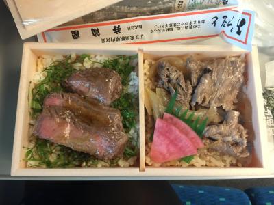本当は湖北のお話という駅弁を買おうと思っていたけど、売り切れていたので、近江牛弁当にしました。近江牛が2種類入っているお弁当で、見た目がなかなか良い感じ。味もしっかり濃いめだけど、後味はさっぱりしてる。美味しい駅弁屋さんです。ほかの駅弁もいろいろ食べてみたい。