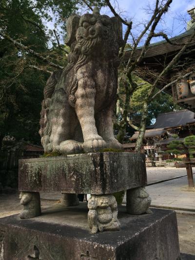 狛犬の台座を4つの鬼が支えているのが面白い。この狛犬について、神社を掃除してた氏子さんらしき方がいろいろ教えてくれたけど、忘れてしまった。。- 旅行時期