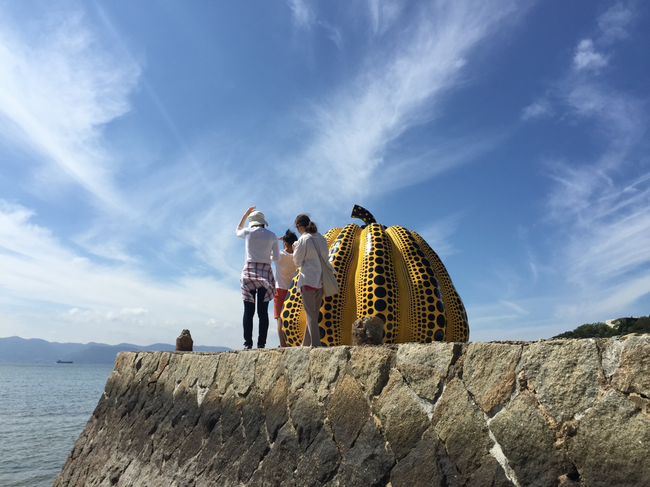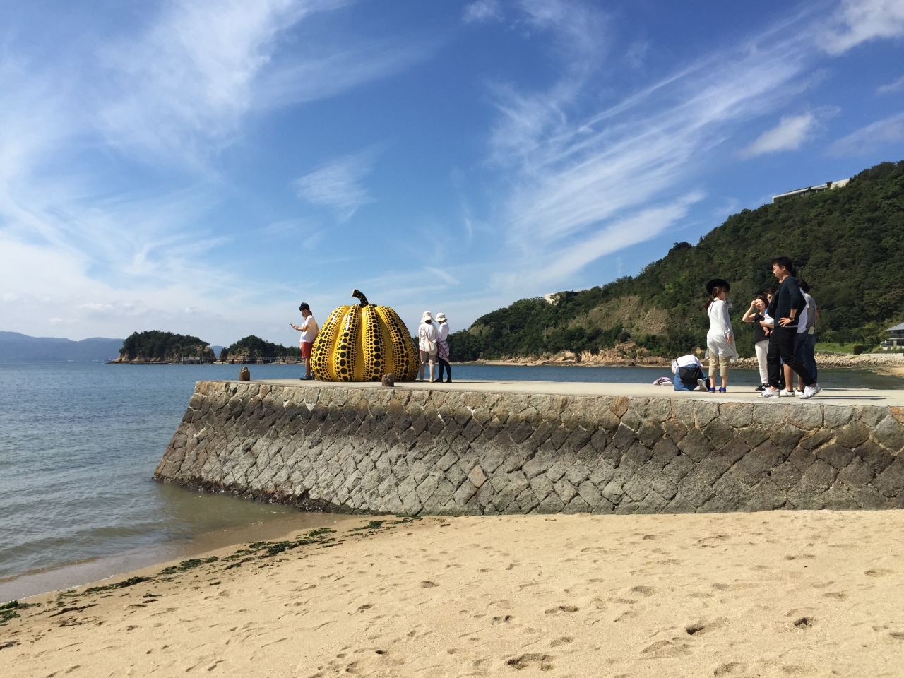 直島のアートと言えば草間弥生さんのかぼちゃが真っ先に思い浮かびます。訪問した時は黄色のかぼちゃでしたが、写真を撮ろうと行列ができてました。