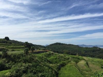 豊島美術館のすぐ近くの景色。豊島美術館目当てでテクテク歩きましたが、ふと棚田の美しさに見とれてしまいました。9月の訪問ですが、緑が鮮やかで綺麗でした。良く整備されている感じで、景観が人の手で維持されているのが素晴らしいと思います。棚田の中をあるっている人がいましたが、今回は時間がなくて断念。次回また来たいです。