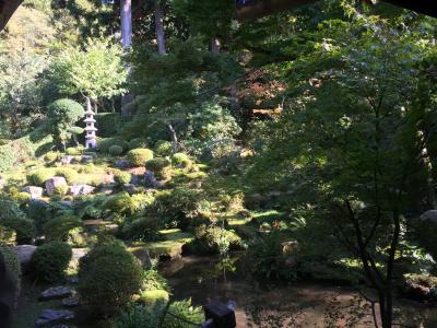 紅葉はまだ早かったけど、三千院から見る庭園の景観は心落ち着きました。色づきかけの葉っぱも、これはこれで良かったです。- 旅行時期