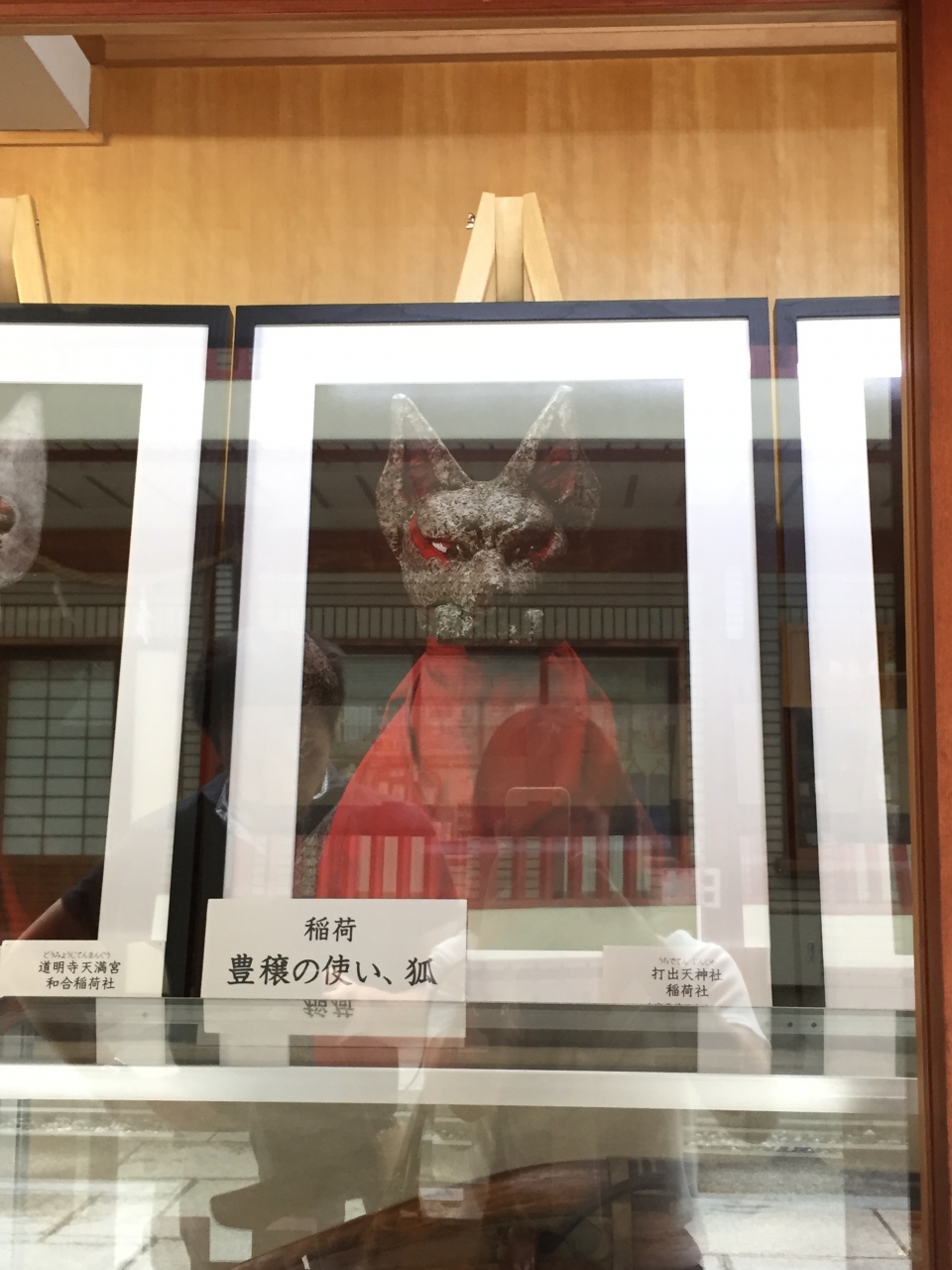 梅田駅でたこ焼きを食べ歩いてから、お初天神にお参りに来ました。独特な形をした本殿で、結構古そうです。賽銭箱の菊の御紋がインパクトあります。社務所の部分だったか、全国の有名どころの駒狐の写真が並んでいてじっくり見てしまった。それが印象的。