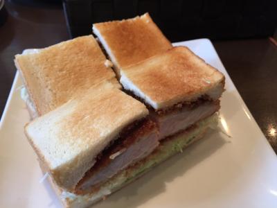 名古屋市博物館を見学してから、こちらの支留比亜に寄りました。レトロな雰囲気のお店で、純喫茶という感じです。店舗は愛知を中心に沢山あるみたい。今回はカツサンドと、チキンのパンケーキを注文。カツの分厚さが嬉しくなります。ボリューム満点で、軽食でなく、普通のお食事になってしまった。