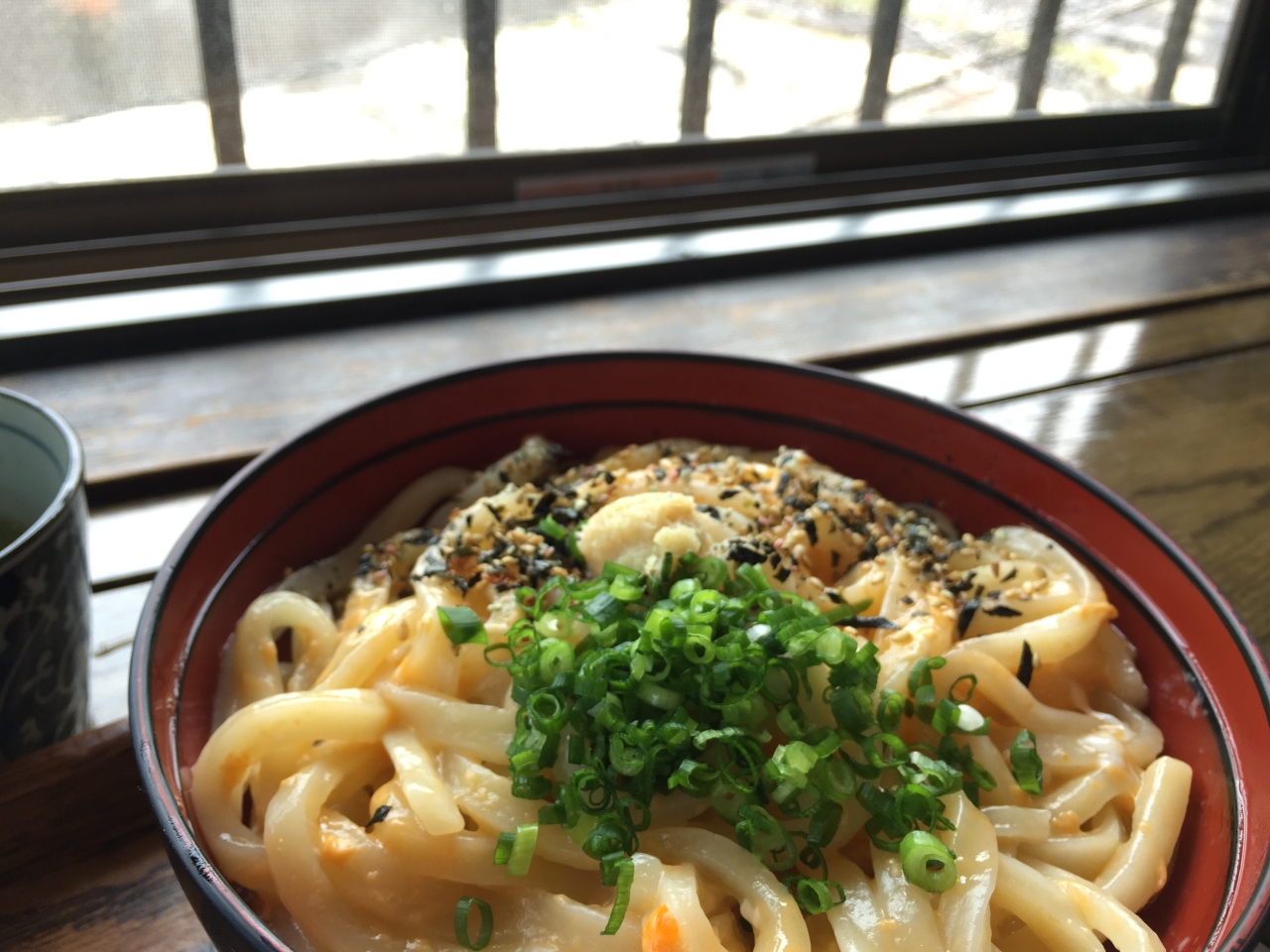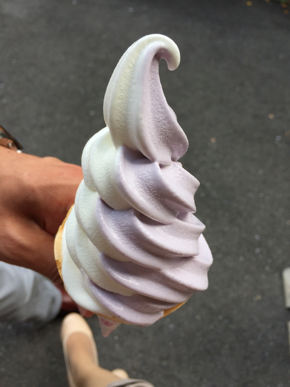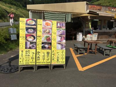 外観は掘立小屋のような感じで、やや不安を感じたけど、暑かったので、バニラとブルーベリーのミックスソフトクリームを食べました。バニラは普通なんだけど、ブルーベリーがすごい薄くて、ブルーベリーの味じゃなかった。軽食のメニューが多いお店で、うどんなどの値段は格安でした。ソフトクリームは普通の値段。