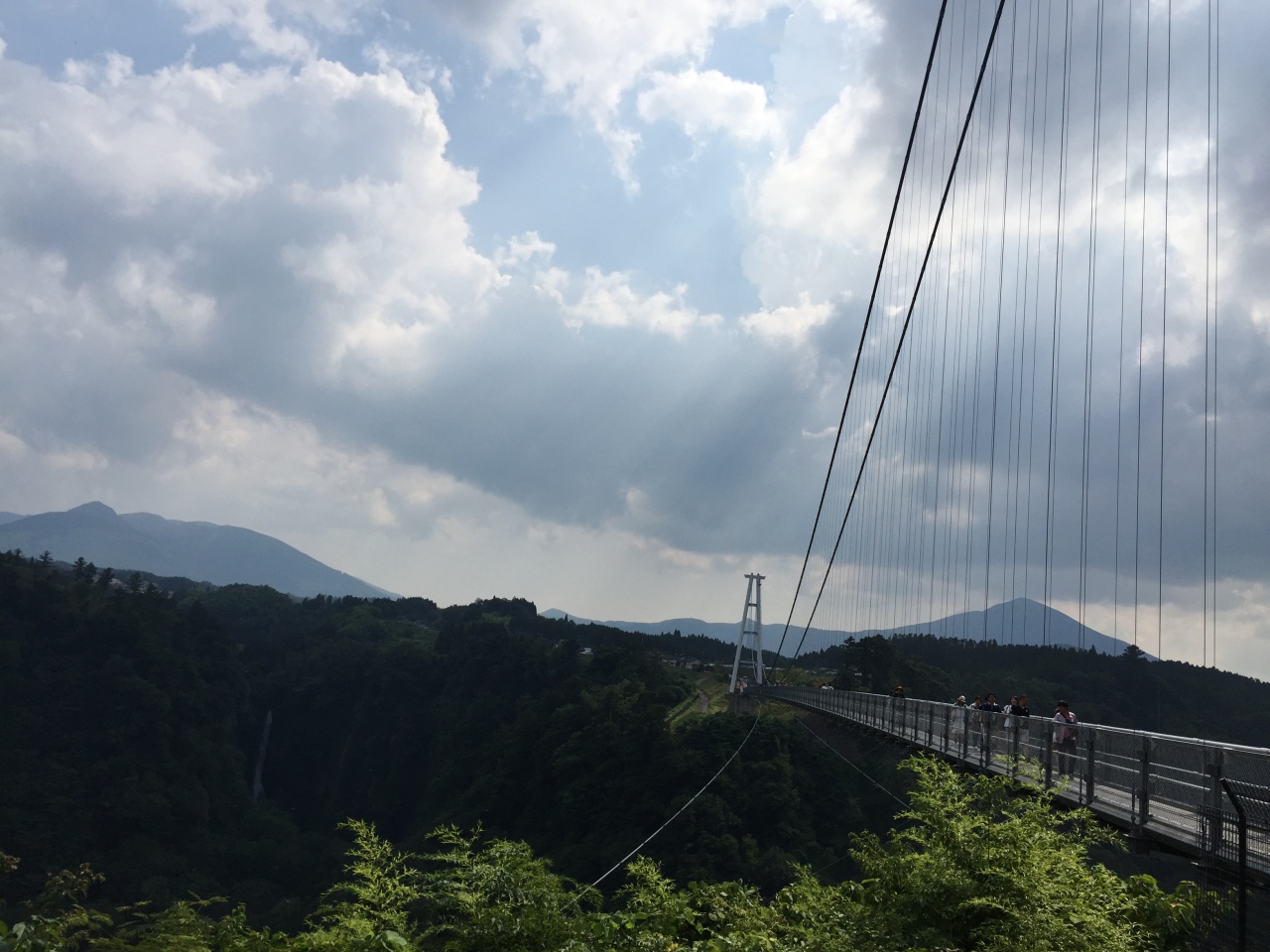 日本一高い吊り橋と呼ばれる九重夢大吊橋。地上173mの景色は圧巻。下を向いても横を向いても不安定な感覚になりました。人はそんなにいなかったけど、少し風が吹くと、ゆらゆらとかなり振動があって、怖い。端から端までの距離もあるので、高所恐怖症の人はなかなか厳しいかも。でも、渡って良かったと思う。