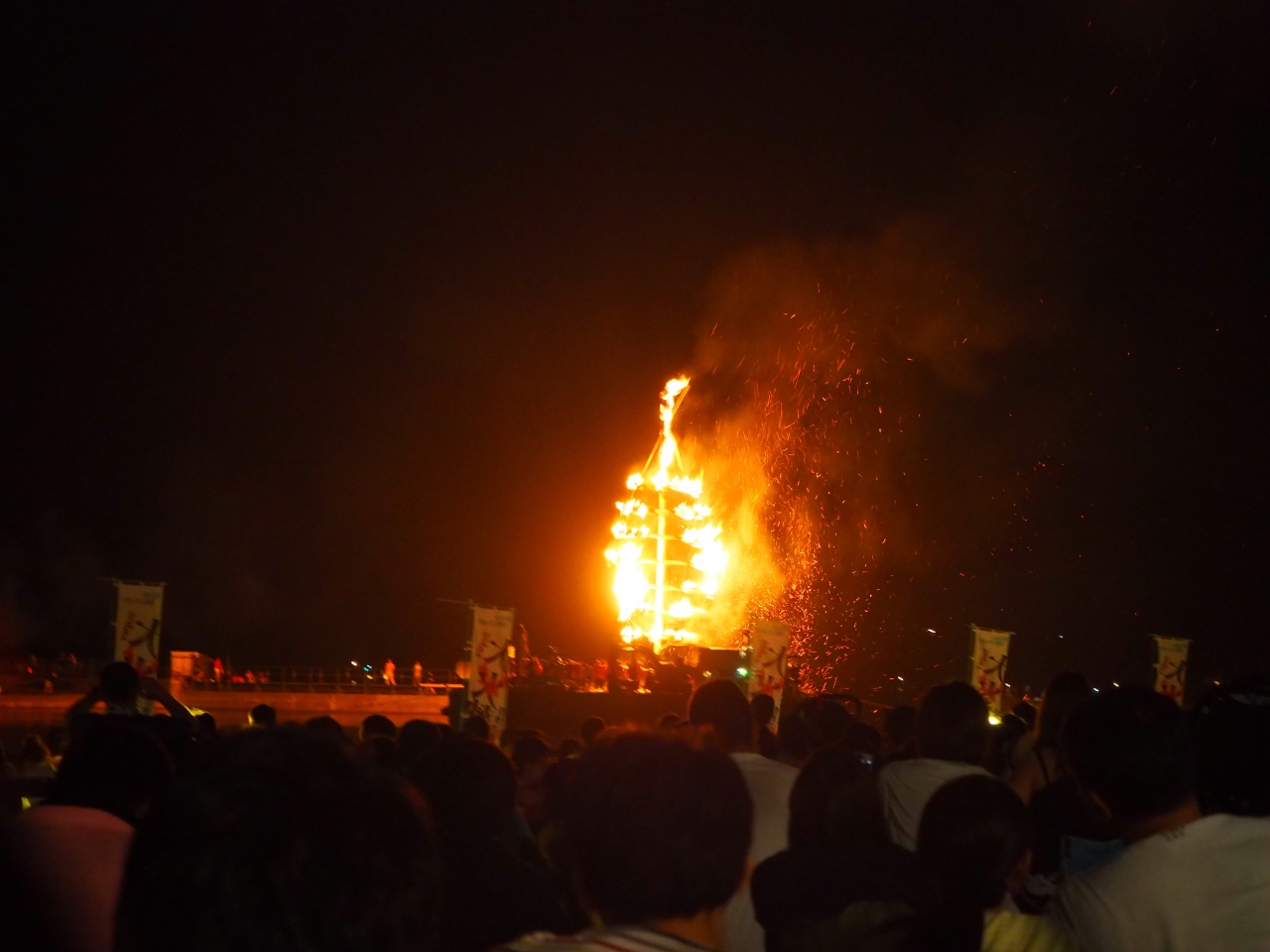 初めてスーパー大火勢をみました。大木が燃えているところは少ししか見れなかったけど、花火の規模は大きくて満足です。海岸沿いで行われているからか、広範囲にわたって花火を打ち上げていて、離れた場所からでも十分大きく見ることができました。屋台も沢山出ていて満足です。交通の便が悪く、バス移動必須なのが残念。