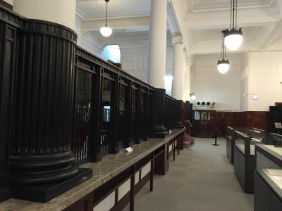 昔、銀行として使われていた建物で、外観はレトロで立派です。館内は銀行として使われていた内装がそのまま残っていて、興味深いです。展示品は撮影禁止ですが、内装は撮影OKだったのも良かったです。展示内容は敦賀市の歴史や文化、商業についての内容が多かったです。敦賀からロシアまでの船が出ている時代があったそうです。