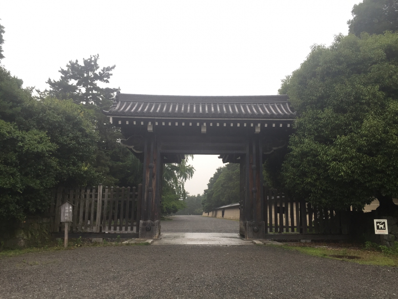 雨の日に京都御所を訪問。特別公開などは特になく、京都御所内をテクテクと歩いた感じ。もともと砂利道というのもあって、歩きにくい道なのが、雨が降っていて余計足元が悪かった。御所内をあるっている最中、黒塗りの車が走って行って羨ましかった。