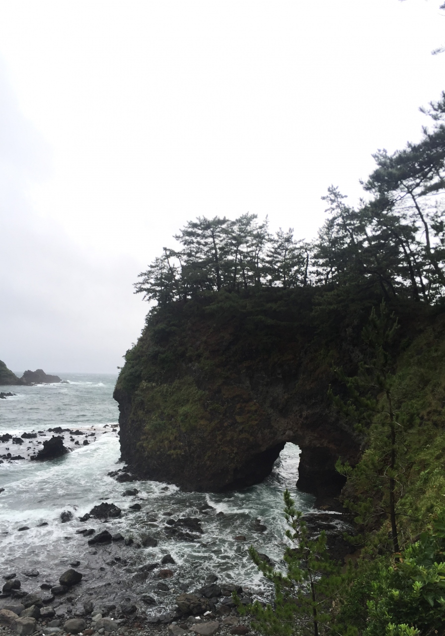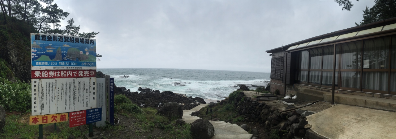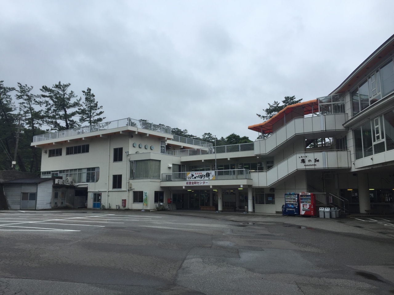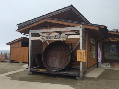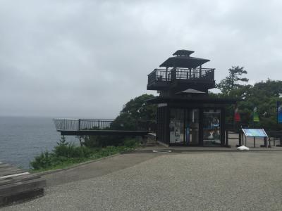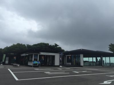 やぐらのような形をした展望台です。曇っていたせいもあったと思うけど、展望台に上ったのと海岸沿いで見た景色はそんなに変わらない気がした。近くには観光センターのようなものがあって、お土産の販売やペッパーくんが出迎えていました。