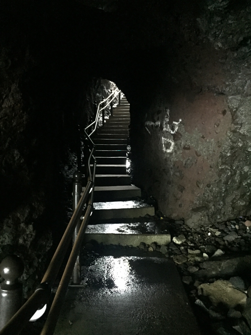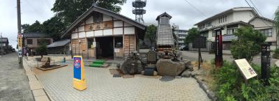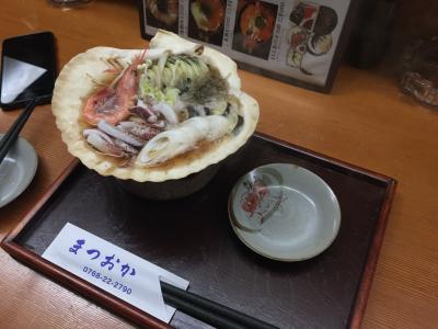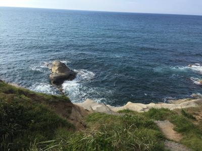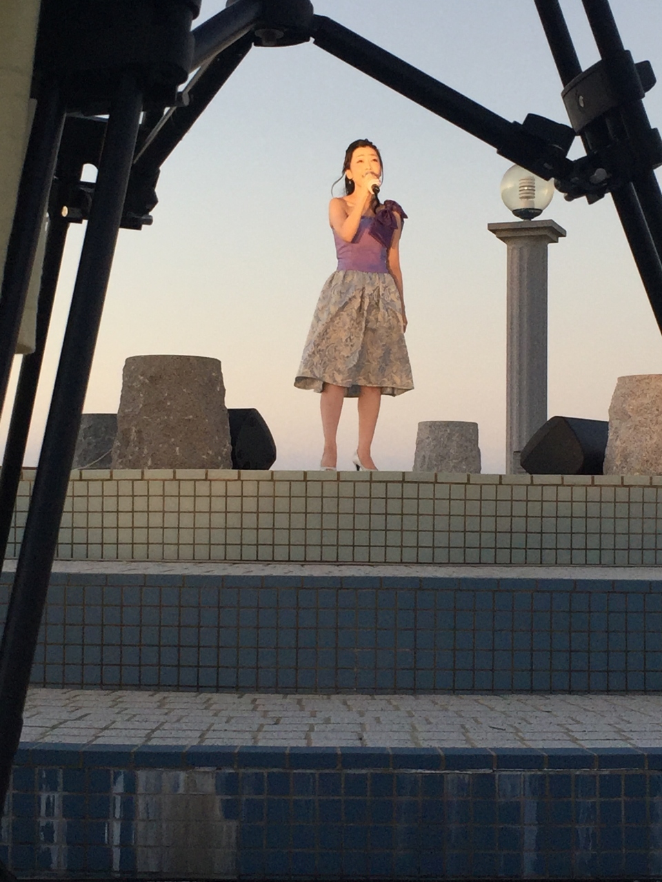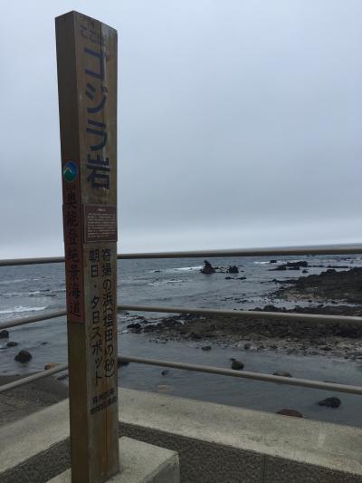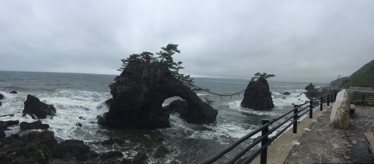 やぐらのような形をした展望台です。曇っていたせいもあったと思うけど、展望台に上ったのと海岸沿いで見た景色はそんなに変わらない気がした。近くには観光センターのようなものがあって、お土産の販売やペッパーくんが出迎えていました。