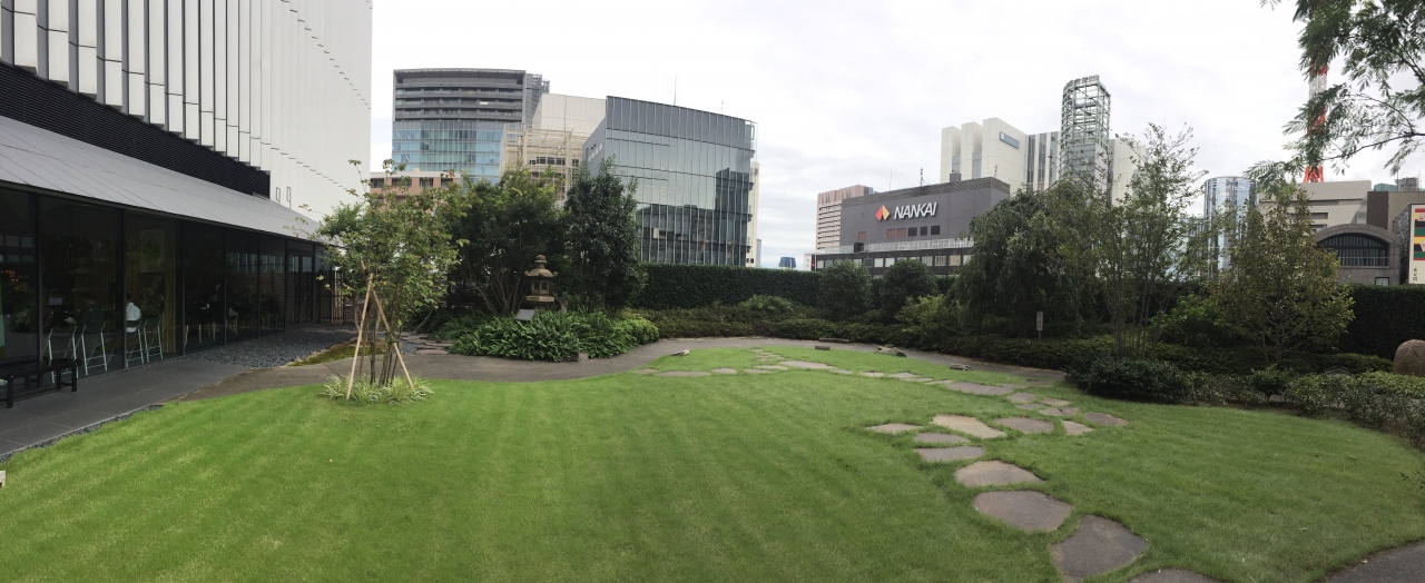 屋上庭園。思ったよりも狭かったです。庭園を1週するのに時間がかからない、しかもベンチが1つか2つしかないので、先客で座れず手持無沙汰に。サッと写真を撮って帰りました。歌舞伎座を見に来た人が休憩タイムに歩くのが通なのかな。庭園から見える永谷園の看板が印象的でした。