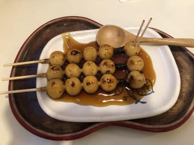 名物のみたらし団子は1本の串に4+1の小さめの団子がささっていと、餡は甘さ控えめなので、1皿に3本ありましたが、パクパクと食べれました。- 旅行時期