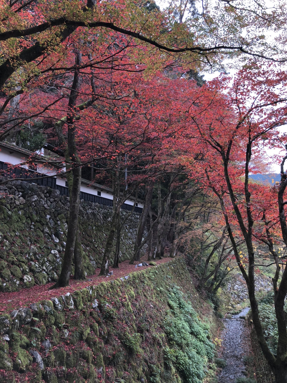 まず駐車場から総門まてかなり急な石段を登り、総門を抜けると山門まで見事なモミジを早速目にすることができます。