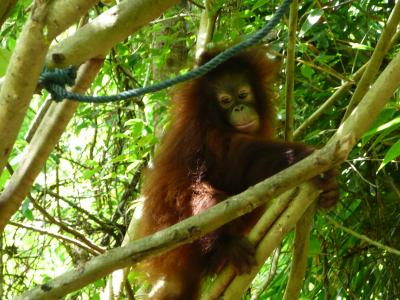 この後、リサーチセンター近くの木のところに赤ちゃんオランウータンがやっ...