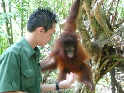 ここがオランウータンがいるジャングルへの入り口です。レンジャーの方から...