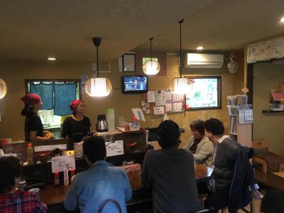 店内はカウンター席とテーブル席が半々くらいです。お昼の時間帯だったので、結構混雑していました。