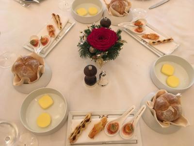 私たちが予約したのは、ヘリコプター遊覧飛行とセットになっている週末ランチで、冷前菜、温前菜、メインディッシュ、デザートと飲み物&チョコレートがメニューに載っています。